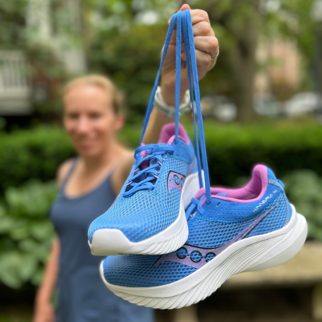 These days I run in Saucony Kinvaras for my easy runs and the Endorphin Speed 3s for more uptempo work. I’ve learned from experience (and also from the advice of professionals when I’ve had injuries), that for me, it’s important to have a flexible shoe that enables my foot to move freely. At one point I tried Altras with a 0mm drop, but I didn’t enjoy them and felt that there was a lack of return on the shoe – my legs felt like lead all of the time. A few other shoes felt too close to the ground for me, and my feet hurt after a few miles. The Kinvaras have proven to be a great match. They are flexible, fairly cushioned, yet responsive, and extremely light. I enjoy the Endorphin Speeds too, but I’m still getting used to their rigidity. I love how fast they make me feel, but I get a little bit of back ache with them, so the jury is still out. It’s possible it’s not the shoe, and it’s more than I need to strengthen my hamstrings and glutes as well as my core!