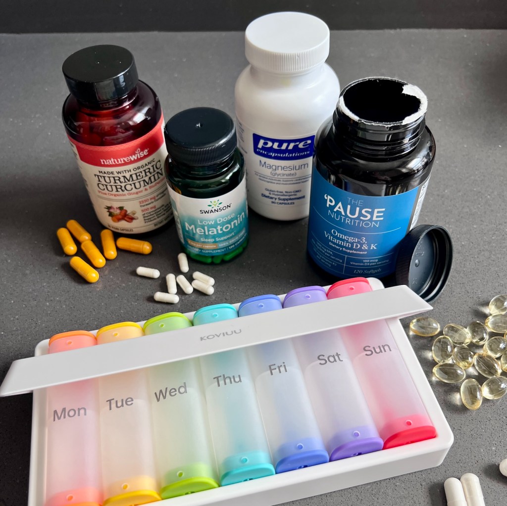 Since getting organized with my supplements, I’m already noticing positive changes. I occasionally used to get heart palpitations during the warm up to exercise. Remembering to take magnesium has completely removed those. I also no longer lie awake in bed and then suddenly remember that I didn’t take a melatonin before the lights out. My energy levels feel more consistent, and I’m experiencing fewer muscle cramps and quicker recovery times after intense workouts. Committing to this weekly organization habit has brought a sense of control and satisfaction, knowing I’m taking proactive steps for my health.