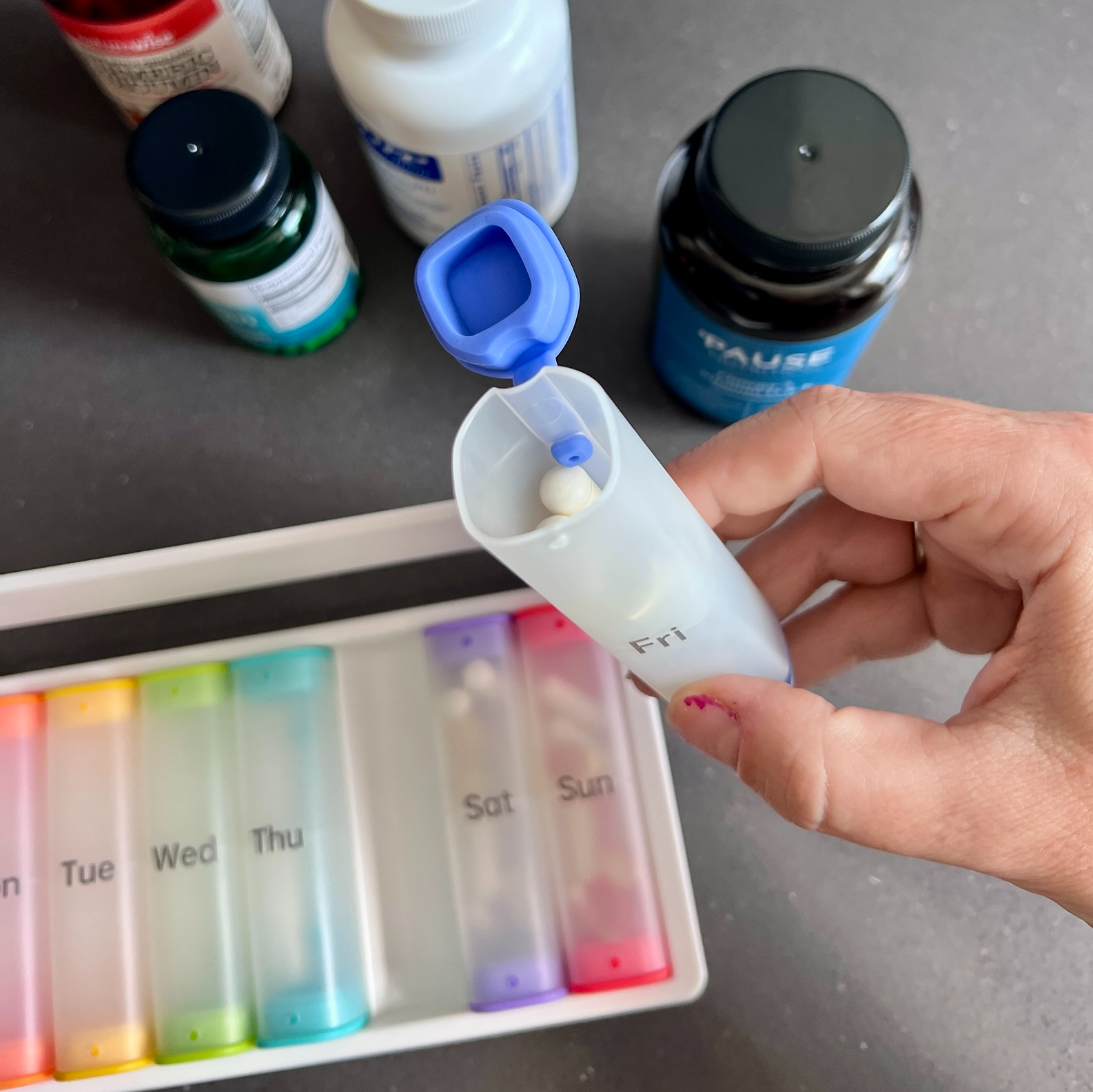 - If I’m going out for the day or away for a few days, I don’t have to take the whole thing. I can just take the capsules that I need for those specific days.