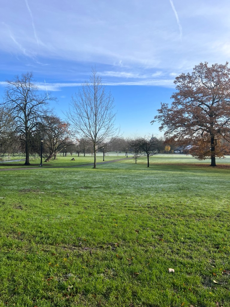 Regent’s Park has a lot of history, once being part of Henry VIII’s hunting forest. It was developed extensively in the 1810s and 20s for use by the Royal Family by John Nash, but by 1841 had been opened to general London residents. The park has an intricate network of paths which are perfect for a spontaneous run. On this occasion I didn’t map out a specific route, opting instead to wander and discover as much as possible. My first stop was the Hanover Bridges, which frame the tranquil boating lake. Early in my run, the lake appeared eerie and serene, but by the end, it reflected a bright blue sky. I even spotted herons up close which was an unexpected surprise.
