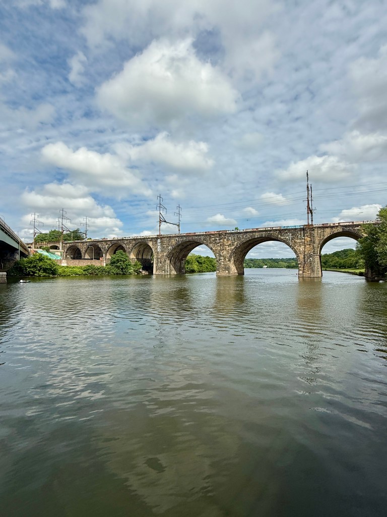 The route was packed with interest. I passed 30th Street Station across the river, cruised under a series of beautiful bridges, and reached the Fairmount Water Works, a spot I once visited for a gorgeous wedding. From there, I looped around the back of the Philadelphia Museum of Art and followed the trail to Boathouse Row, which I’ve always wanted to see up close. The historic and colourful boathouses were even more charming in person, with crews out rowing and the water sparkling in the morning sun.
