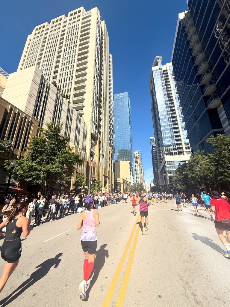 From there, the race unfolded just as I remembered it. I know the course so well; every aid station, every band, every cheer group! This year, the crowds were louder than ever. Running through the Loop in the early miles, I couldn’t believe how many people were out cheering for complete strangers. Coming from D.C., where the sense of community currently feels smaller and very stressed, it warmed my heart and reminded me of how much I miss Chicago, which I consider my home.