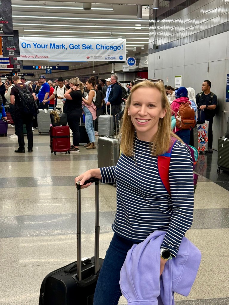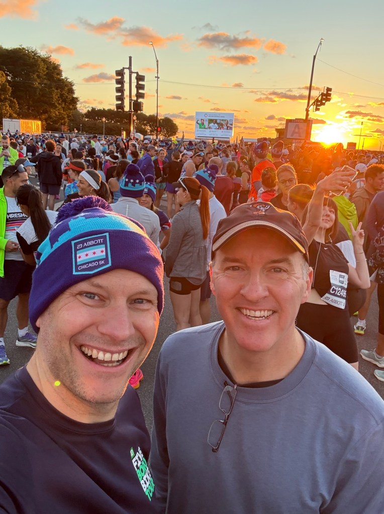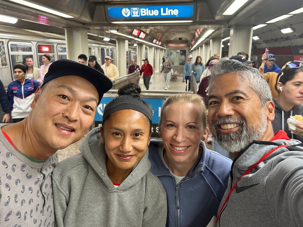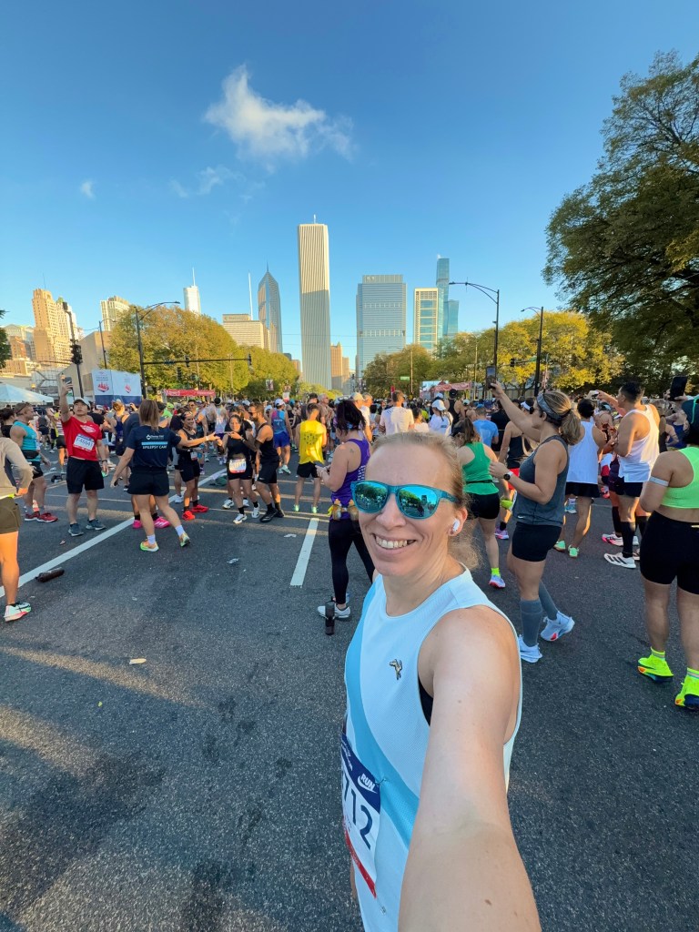 At 5:50 a.m. I stepped out into the early morning darkness to make my way to Grant Park. Luckily, the trains were running frequently, and the platform was buzzing with runners. As I looked to my left, I spotted an old friend I hadn’t seen in years! His face lit up, and after a big hug, we spent the train ride catching up. It completely eased my nerves and reminded me how lucky I am to have friends in this city.