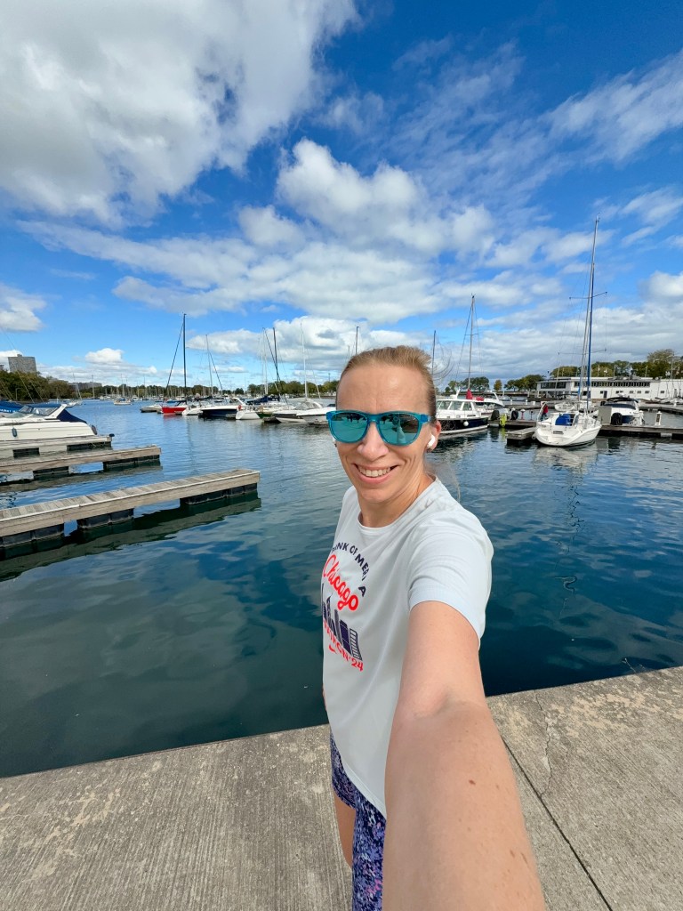 A little later, I went out for a short shake-out run. I’ve started running 2.62 miles the day before a marathon, a little ritual a good friend shared with me, which took me out to Belmont Harbor and back. The weather was perfect, my hamstring (which had been niggling me) felt fine, and it was a peaceful chance to clear my head.