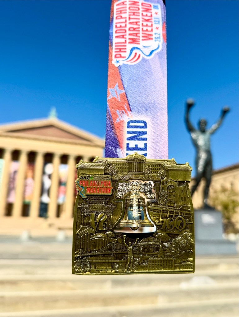 The Philadelphia Marathon was my “A” race this autumn, and I’d been looking forward to running it ever since I discovered that its medal contains a little ringing bell! I’d heard from friends that the course was flat, fast and ideal for a PR, and given how much I like Philly, I couldn’t think of a more fun race for the fall. I was also looking forward to a more chilled experience than a marathon major, which I really enjoy, but can feel overwhelming.